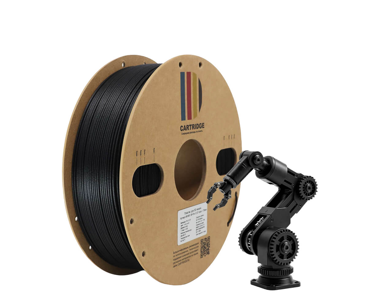 Прочный и жёсткий материал: деталь выдерживает постоянные нагрузки и не ломается. Почти не даёт усадку и не коробит при печати — детали получаются точными с первого раза. Отличная межслойная адгезия — деталь не расслаивается. Стойкий к химии: масла, бензин, щёлочи не страшны. Почти не боится влаги — менее 1% водопоглощения за сутки. Работает до +120°C (кратковременно до +160°C). Обладает низким трением — идеален для шестерён. Лёгкий, подходит для дронов и робототехники. Главное отличие от PA6-CF: почти не боится влаги, проще в хранении и печати, но чуть уступает в прочности и термостойкости. |