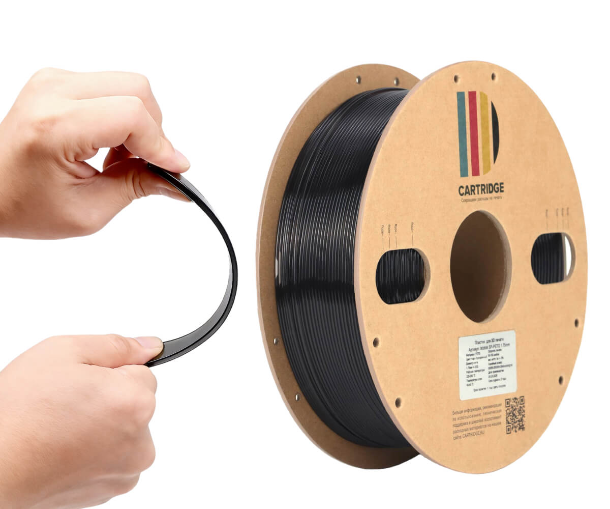 Гигроскопичен — требует сушки и герметичного хранения. Печать только с подогревом стола. Склонен к образованию нитей (струнгинг). |